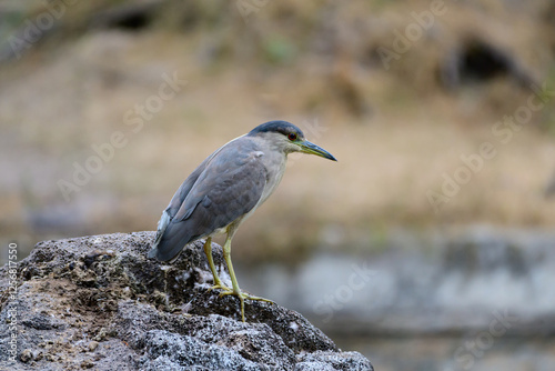 black crowned night heron on a rock