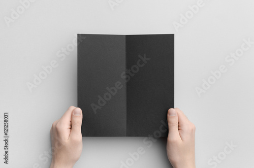 mock-up, hand, print, blank, fold, portfolio, presentation, template, male, clean, black, simple, half, mock, up, holding, design, showing, menu, man, minimalist