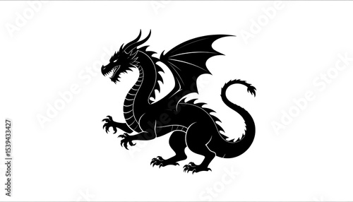 dragon, fantasy, graphic design, illustration, vector, silhouette, heraldic, emblem, symbol, logotype, tattoo, art, design element, creature, mythical, beast, winged, reptile