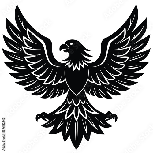 eagle, black, silhouette, vector, illustration, tribal, wing, design, bird, animal, nature, wildlife, flying, predator, art, symbol, graphic, abstract, emblem, icon, tattoo, majestic, powerful, strong, freedom, sky, flight, outline, shape, dark, decorative, artistic, stylised, tribal art, graphic design