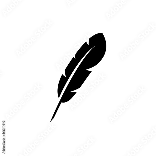 Black feather icon. Bird plumage and vintage poetry pen for calligraphy writing and sketching with classic retro design and literary vector silhouette