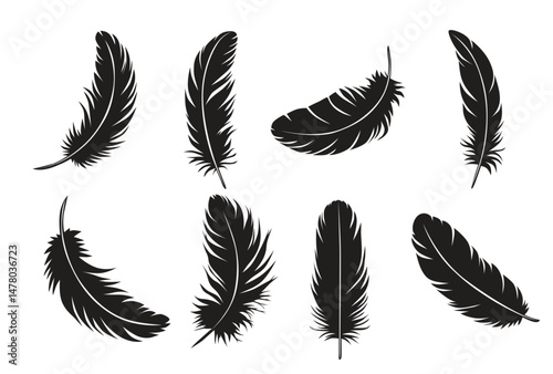 feather, bird, logotype, set, icon, vector, pen, art, symbol, object