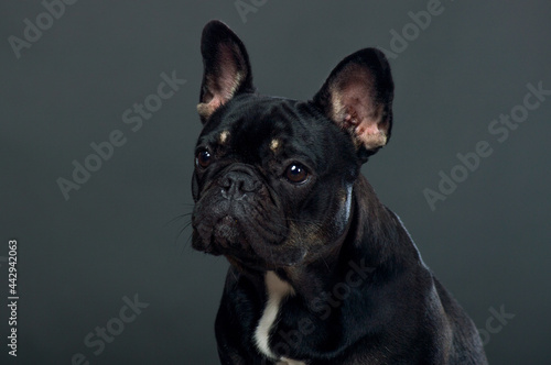 dog, puppy, black, pet, animal, bulldog, french, french bulldog, white, cute, isolated, breed, canino, portrait, white background, pedigree, young, studio, adorable, mammal, purebred, doggy, brown, domestic, isolated on white