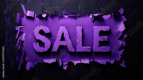 Black Friday. Cyber Monday. Torn purple paper with the word "SALE" written on it, against a black background. Creative concept for sales and special offers, business ideas