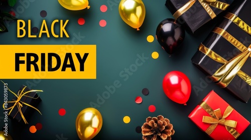 black, friday, sale, promo, 2024, concept, background, balloon, gift, box, holiday, red, gold, yellow, banner, poster, balloon, shop, template, promotion, tags, special, price, product, business, offer, design, discount