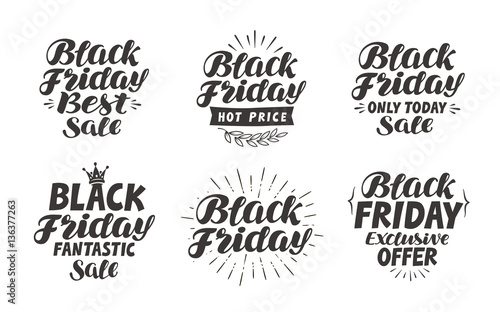 Black Friday, Sale label. Lettering, calligraphy vector. Icons and symbols