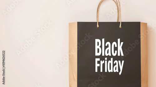 Black Friday Shopping Bag with Bold Typography on Minimalist Background Ideal for Seasonal Marketing and Retail Promotions Showcasing Holiday Sales Events