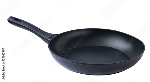 black frying pan with a non-stick coating isolated on white background. full depth of field.