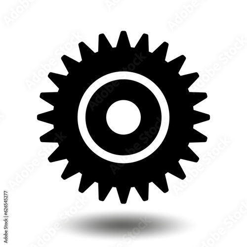 Black gear icon. Machine sprocket gear icon. Flat design. Vector cogwheel sign symbol on a white background.