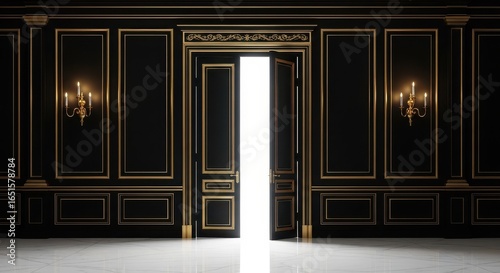 doorway, open door, candlelight, french door, black, gold, luxury, interior, elegant, and, with, open, double, door, creating, dramatic, luxurious, scene, the, setting, sophisticated, mysterious, honed, for, product, mood, board, adding, touch, opulence