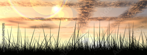 Black grass over sky sunset banner