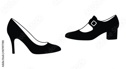 Black high heel shoes with different styles and buckle details