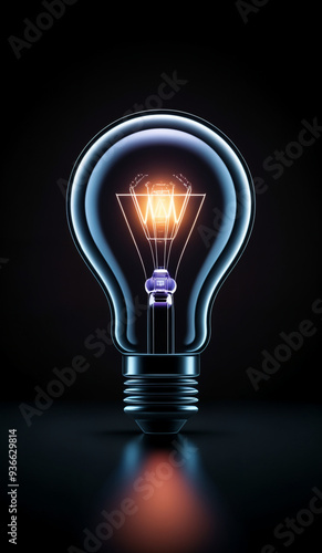 Black holographic glowing lightbulb with copy space.