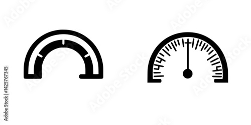 Black icon set featuring two distinct gauge designs, one curved and the other linear, showcasing measurement details effectively