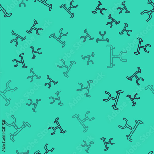 Black line Bicycle handlebar icon isolated seamless pattern on green background. Vector.