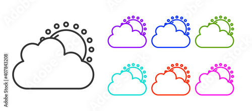 Black line Sun and cloud weather icon isolated on white background. Set icons colorful. Vector.