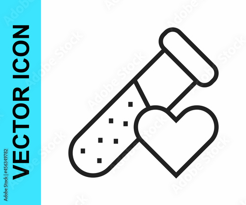 Black line Test tube or flask with blood icon isolated on white background. Laboratory, chemical, scientific glassware sign. Vector