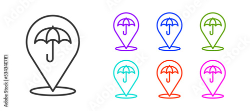 Black line Umbrella icon isolated on white background. Insurance concept. Waterproof icon. Protection, safety, security concept. Set icons colorful. Vector