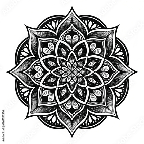 Black Mandala Silhouette Design on White Background – Intricate Geometric Floral Pattern for Tattoo, Decoration, and Spiritual Art