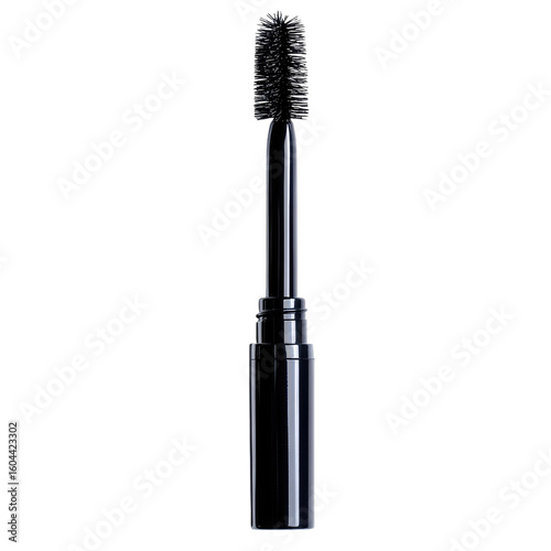 Black mascara tube with a brush, isolated on a white background. transparent, alpha background png