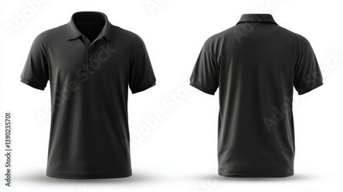 Black men's polo shirt template with front and back views, ideal for graphic design mockups, presented on a white background.