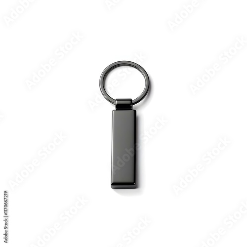 keychain, metal, black, keyring, branding, design, template, blank, isolated, white background, accessory, hardware, object, realistic, chrome, shiny, elegant, minimal, simple, promotion, advertising, marketing, gift, product, illustration, commercial, business, corporate