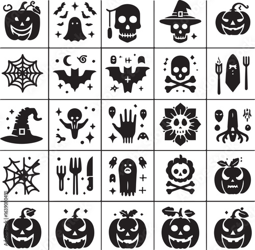 halloween, illustration, spider, pumpkin, vector, skittish, ghost, hat, spider's web, grave, horror, october, fear, sorcerer, candy, symbol, skull, cartoon, cemetery, autumn, horizontal, candle, gravestone, celebration, coffin, design, fantasy, vampire, bone, broom, decoration, domestic cat, outline, evil, humor, moon, mystery, wolf