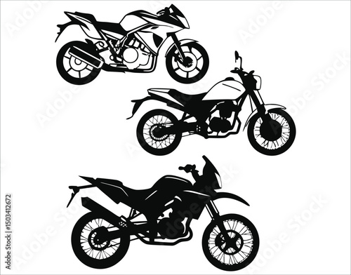Black Motorcycle Silhouettes on White