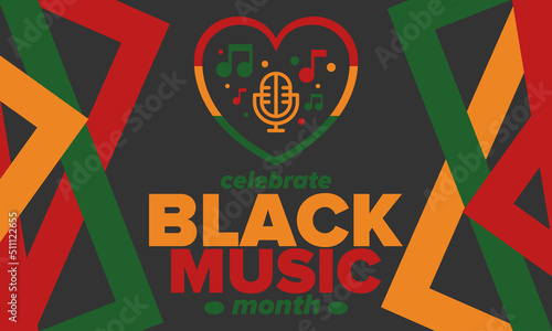 Black Music Month in June. African-American Music Appreciation Month. Celebrated annual in United States. Music concept. Poster, card, banner and background. Vector illustration