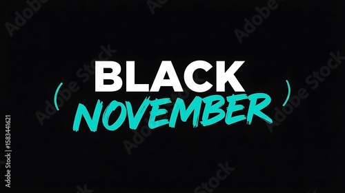 Black november promotional banner with bold white and blue typography on dark background, perfect for discount sales, cyber week advertising, e-commerce promotions, online store offers and marketing