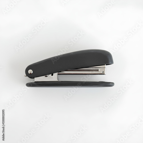 stapler, stationery, isolated, black, office, work, business, school, document, paper, tool, equipment, metal, plastic, desk, simple, minimal, minimalist, sideview, studio, accessory, fastening, binding, staple, paperwork, clean, standard, basic, supply, gear, item, object, topview, desktop, administration, clerical