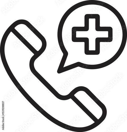 phone, handset, phone, icon, medicals, cross, plus, symbol, speech bubble, communication, health care, helpline, support, assistance, emergency, contact, service, black, outline, graphic, design, vector, illustration, simple, minimalist, flat, digital, interface, app, website, signage, information, notification, alert, buttons, signs, summing, health, hospital, medicine, web, aid, circle, cyberspace, medic, first, round