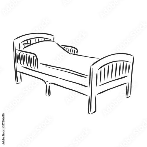 Black outline vector Bed on white background. bed, vector sketch illustration