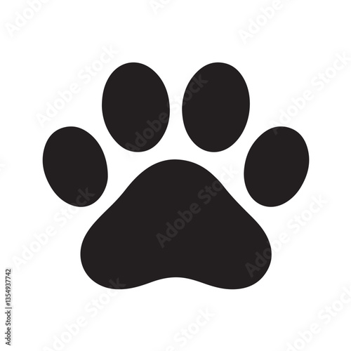 Black Paw Print with Heart-Shaped Pad in Simple Black and White Style