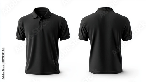 black, polo, shirt, t-shirt, clothing, apparel, mock-up, template, fashion, style, menswear, male, model, front, back, view, cotton, fabric, textile, casual attire, wear, summer, spring, outfit, uniform, business, corporate, branding, advertising, marketing, product, photo, isolated, background, white, studio, realistic, garment, sleeve, collar, buttons, comfortable, elegant, simple, clean, texture, quality, soft