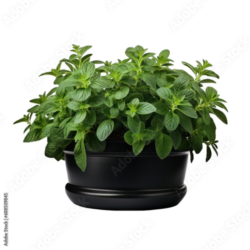 Black Pot with Oregano Plant Isolated on Transparent or White Background, PNG