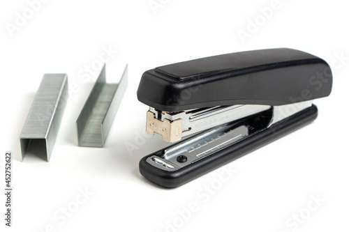 Black professional stapler isolated on white background