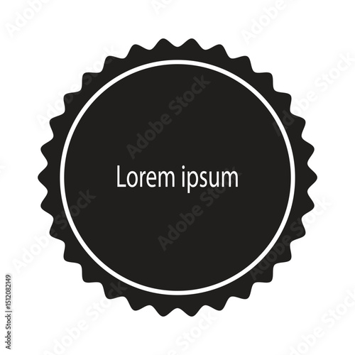 Black Round Badge with Jagged Edge and Editable Text Center, stamp, Vector Label Design Template for Branding, Promotion, E-commerce, Certificate or Sale Graphic with Retro Emblem Style.