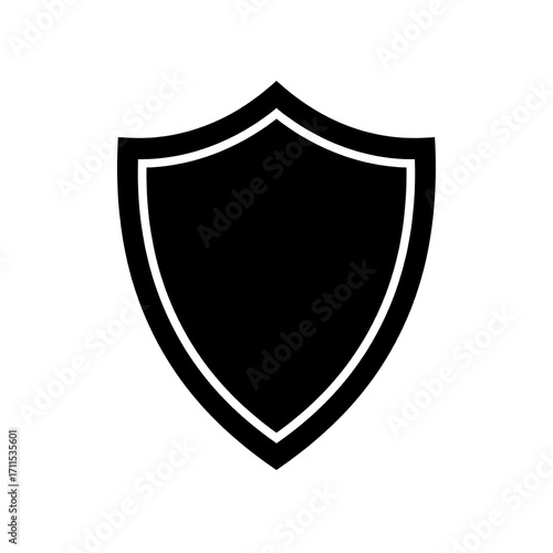 Black Shield Silhouette on White Background Protection Concept