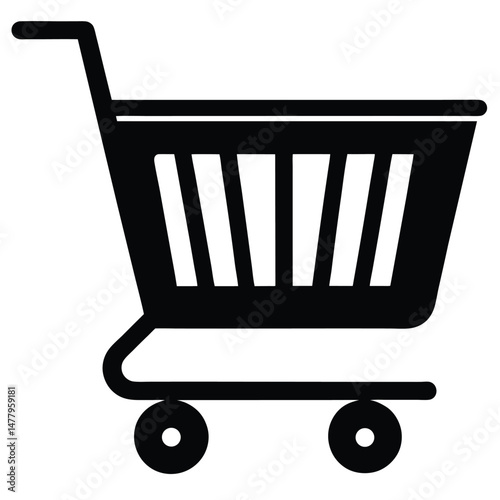 Black Shopping Cart Icon Featuring Vertical Lines and Two Wheels Illustration