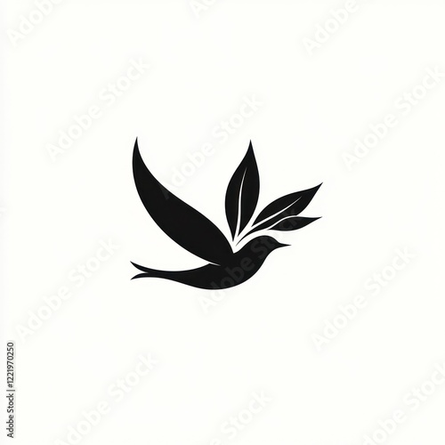 bird, black, silhouette, leaf, flying, fly up, nature, graphic, design, logotype, symbol, avian, wing, flight, freedom, peace, environment, ecology, green, organic, growth, spring, summer, life, vitality, elegance, beauty, art, illustration, image, simple, minimal, abstract, style, clean, modern, concept, white, background, template