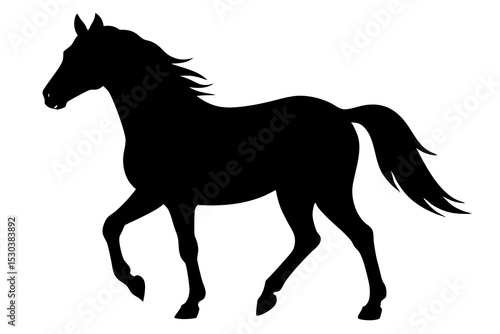 Black Silhouette of a Horse in Motion, Elegant Equine Design