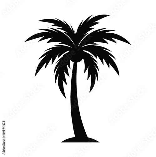 palm tree, silhouette, black, white background, tropical, tree, nature, icon, vector, illustration, isolated, summer, beach, island, plant, leaf, frond, botanical, organic, simple, graphic, design, element, symbol, zen, minimalist, clean