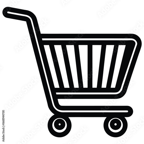 shopping cart, streetcar, supermarket, retail, commerce, consumer, purchase, buy, shop, grocery, store, market, basket, wheel, handle, vector, illustration, graphic, design, icon, symbol, simple, clean, isolated, white background, black, silhouette, merchandise, product, sale, business, consumerism, convenience, transport, carrying, good, food, online shopping, e-business, delivery, logistic, client