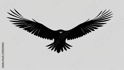 Black silhouette of an eagle with wide-spread wings, captured mid-flight.