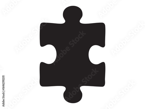 Black silhouette of single puzzle piece, isolated on white background. concept of puzzle, connection, problem-solving, game, education, jigsaw, icon, logo, design element