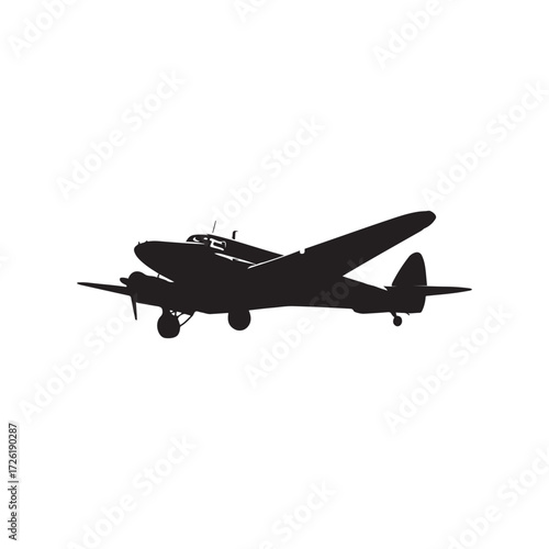 Black Silhouette of Vintage Airplane on White Background
