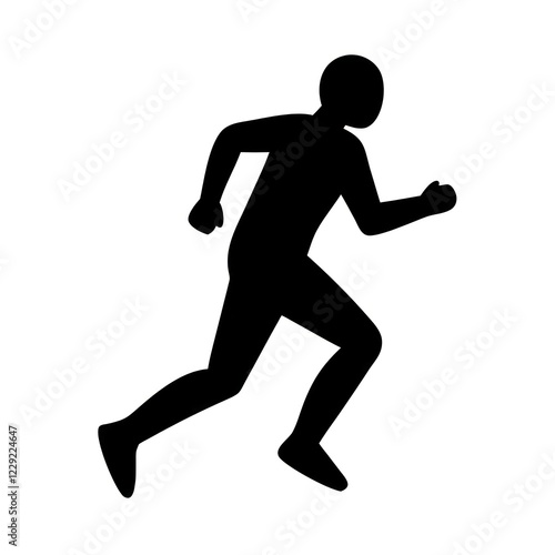 Black Simple Silhouette of a Running Person in Dynamic Pose on a White Background