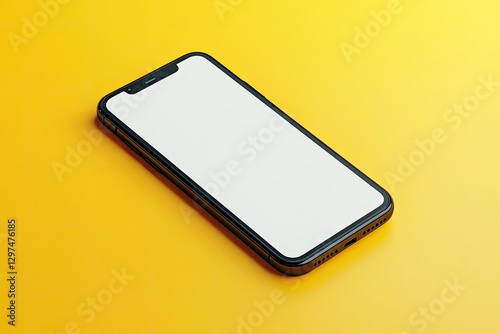 Black Smartphone with Blank Screen Mockup Isolated on Blue Background Clipping Path