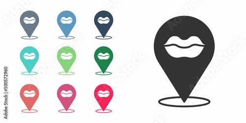 Black Smiling lips icon isolated on white background. Smile symbol. Set icons colorful. Vector